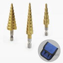 - ステップドリル タケノコドリル HSS鋼 3本 セット 3-12mm 4-12mm 4-20mm 六角軸 チタンコーティング ドリルビット ケース付 インパクト ドライバー