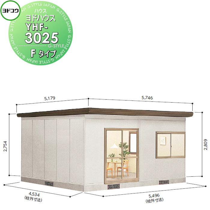 - 【無料★特典対象】 ヨドコウ 淀川製鋼 ヨドハウス 収納部屋 Fタイプ 15畳 間口5496×高さ2809×奥行き4534mm 一般型 YHF-3025 収納 屋外 小屋 プレハブ 部屋 組立