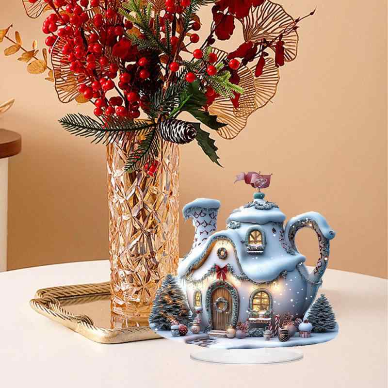 - 卓上置物 アクリルプレート 雪の降る小屋 スノーコテージ ログハウス ポジティブメッセージ 励まし 癒し アメリカンカントリー風 インテリア雑貨 ホームデコレーション 飾り