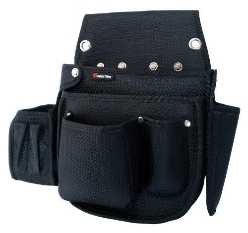 ■Worktime Evolition 仮枠袋底丸 墨壷差し&工具差し付き腰袋 軽量ポリエステル製 ブラック 金具付き シンプル設計 シンプルデザイン プロ 腰道具 腰袋 釘袋 仮枠タイプ 道具袋 大工 スミツボホルダー EM-04 コヅチ 小槌