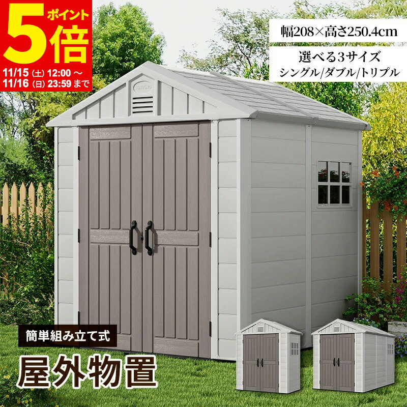■【ポイント5倍★11/15 12:00〜11/16 23:59】 物置 大型物置 屋外物置 樹脂製 軽量 組立て式 シングル ダブル トリプル 高密度ポリエチレン 天窓付き 窓付き 鍵穴付き 倉庫 小屋 物置き ガレージ 大型 収納 おしゃれ 庭 DIY 簡易