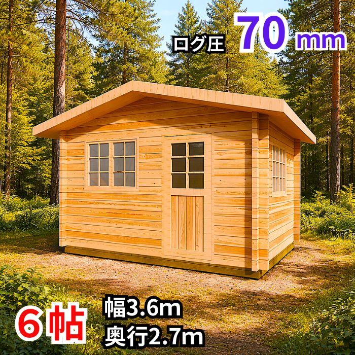ログハウスキット ログハウス キットハウス ログキット ガレージ 車庫 コテージ 別荘 店舗 物置 納屋 ガーデンハウス 離れ部屋 趣味部屋 DIY ログ圧70mm 天然木 パイン材 確認申請 構造計算書 ログハウスキット 6帖タイプ【幅3.6m×奥行2.7m】 ログ圧70mm 確認申請図面、構造計算書付属モデル 6帖タイプのログハウスキット。物置、趣味部屋、工房、店舗、事務所、納屋など様々な用途...