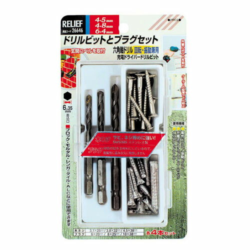 ■RELIEF 26646 ドリルビットとプラグセット 3本組 4.5mm 4.8mm 6.4mm RELIEF リリーフ ミツトモ製作所