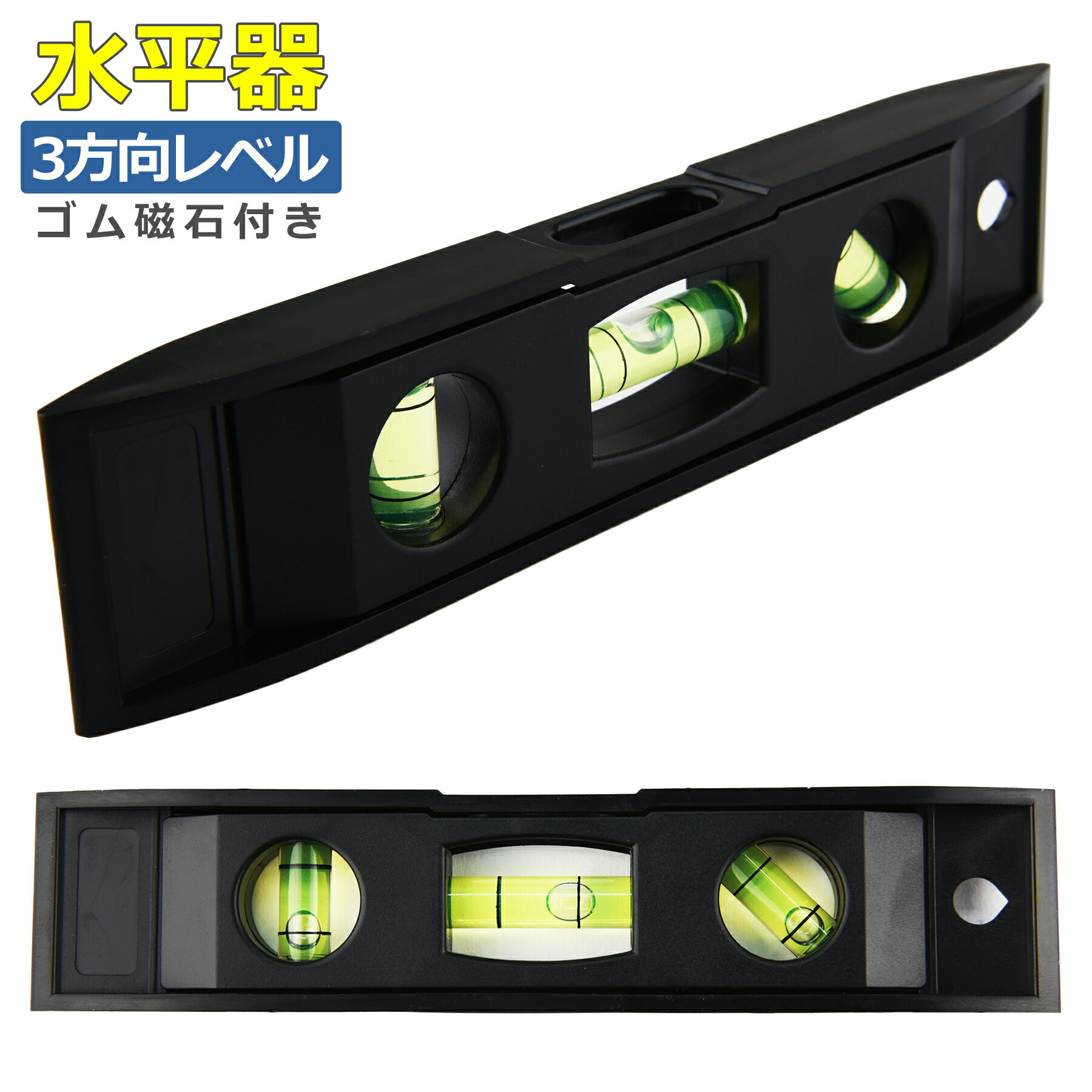 ■水平器 3方向 レベル 水準器 ゴム磁石付 小型 水平 垂直 45度 マグネット コンパクト 建築 土木 DIY 設備 現場 測定 計測