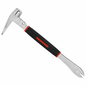一丁、2役のハンマーヘッド付きの内装バールです。釘抜き・内装はがし作業。作業中の、ちょっと叩きたいという場面に最適な、ハンマー付きの内装バールです。ハンマーヘッド付きで、叩く作業が出来、釘抜き・ボードや内装材のはがし作業にも最適です。二重成形のソフトグリップ仕様で、軍手等でも滑りにくい設計です。本体は売れ筋サイズの250mmです。落下防止用の接続コードが取り付けられます。●全長:約250mm。●錆...