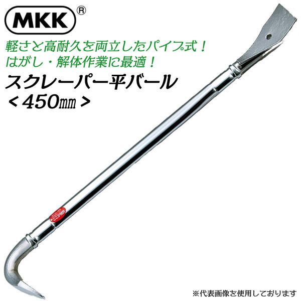 ■MKK スクレーパー平バール 450mm 取付け作業 取外し作業 サビ落とし スクレーパー作業 ハガシ作業 テコ作業 解体作業 ワイド幅 クロームメッキ仕上げ SRF-450 モトコマ