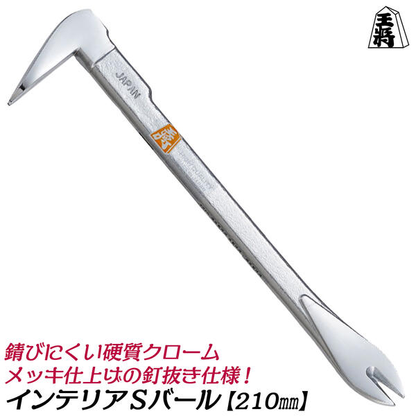 ■須佐製作所 燕三条鍛冶 インテリアバール Sタイプ 210mm 硬質クロームメッキ仕上げ 小型 インテリアSバール 剥がし 内装 テコ スクレーパーバール 軽量 三条鍛冶 ヘラ 釘抜き 日本製 国産 Sバール 王将
